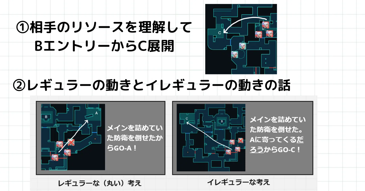 リソースについて理解して薄い場所を攻めていく / レギュラーとイレギュラーの動きの理解