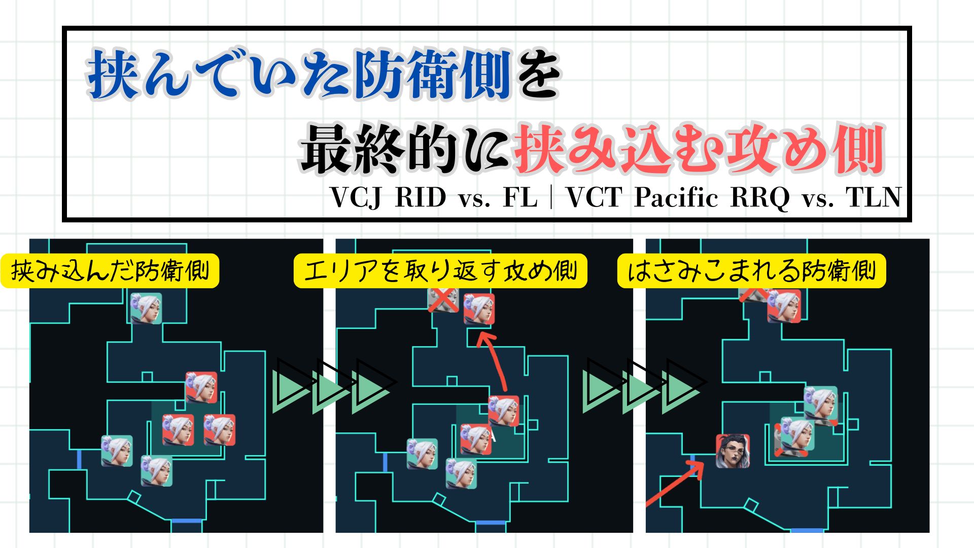 「VCJ|FL vs. RIDとVCT|RRQ vs. TLNのCORRODEでのはさみをみてみよう。」