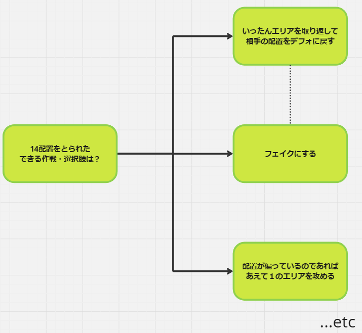 もちろんあくまで一例です。14配置をとられた場合でもできることはいろいろあると思います。