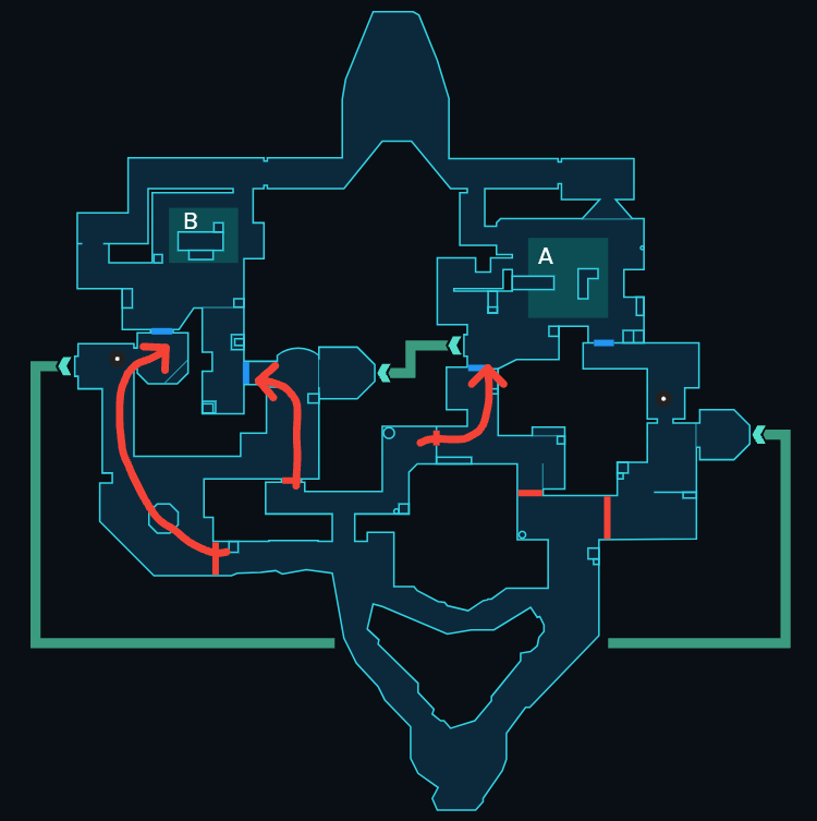GEN vs. THの試合では,1・2ラウンド目にセンチをBにしていたがラッシュ警戒のラウンドなので(ゲッコ―のULTがたまっているから)Bにセンチをおくことで対策をしていた。
