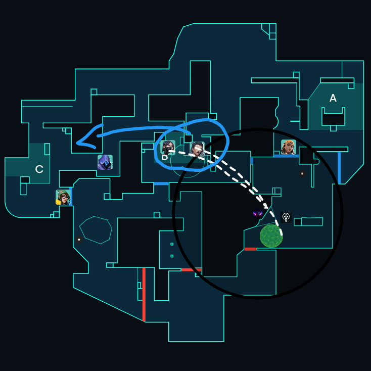 Aに多いと思わせられればCは引き配置をとっていると相手は考えるのがベタなのでメインをとるときにドライで突っ込んでくるかもしれない。であれば<u>オペが刺さる</u>