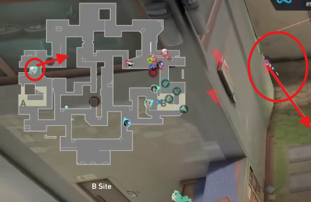 実際にKOナイフが残り時間1分で上がり,残り50秒のタイミングでナイフをジャンプピークでサイトに入れてエントリーを試みていた。