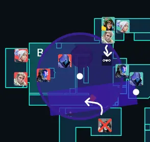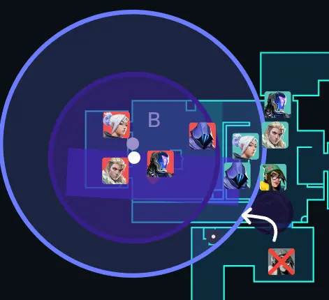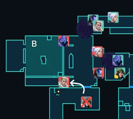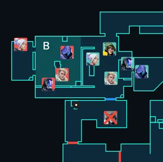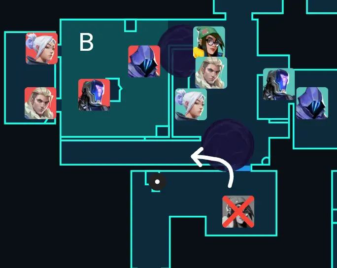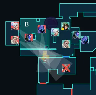 このラウンドより前にBサイトのポストプラントでサイトにひく配置ではなく前目で守るのを見せておくラウンドがあるとなおよいと思います。