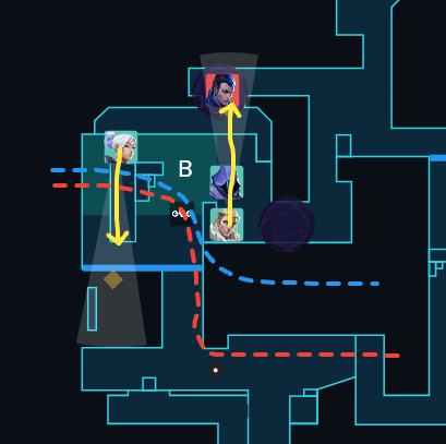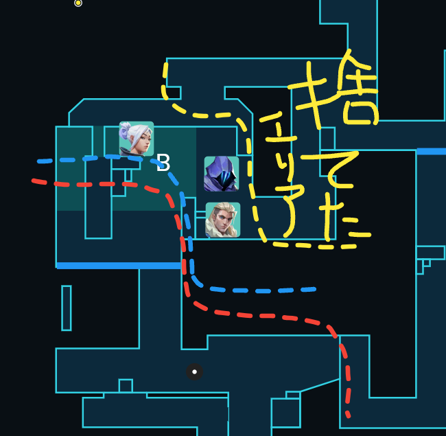 相手はスキルを使い徐々にラインを上げてリテイクを行ってくる。相手がスキルを使ってだいたいプラントをしたエリアをとりに来るタイミングでヨルULTをつかい相手の裏をとりに行く。