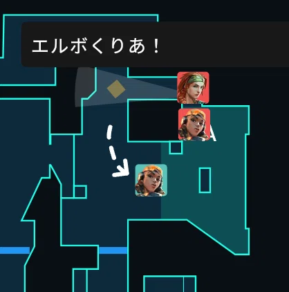 エルボをふたりでクリアリングして択をせばめて二人で2段でまつという動き。