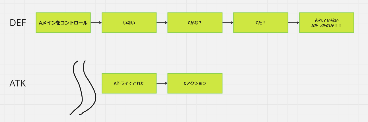 DEFが初手でAコントロールをして誰もいないことを確認すると、Cを予想します。