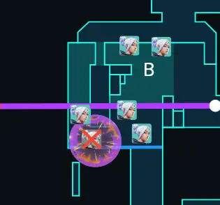 - ②サイトを一度捨ててULTの後ろで味方の合流を待って完全なリテイクを狙う