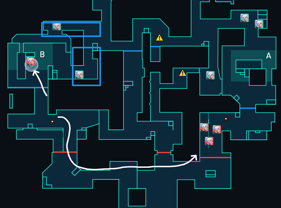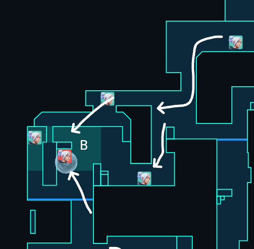 (もちろん、これを考えて防衛はブラフのラウンド、メインコントロールをしているように見せて実はショート側に人数を寄せておくという動きも必要になるわけなのですが。)
