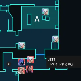 ヘイトとベイトの説明と最終的にJettがラークという形で相手を挟むことに成功しますが、