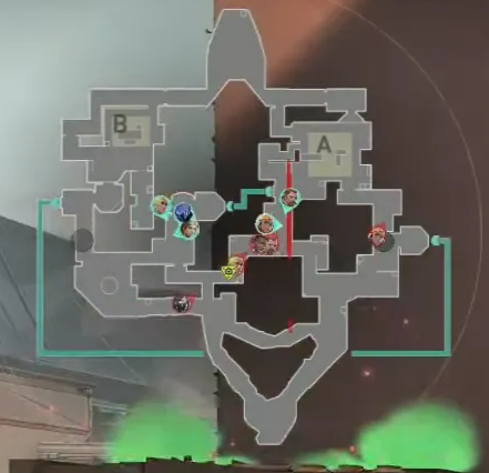 ④相手の攻め側がドローンを使いサイト中を索敵してBrimstoneだけしか見えないことを確認してBに攻めてくる