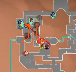 ③TP音を聞いた攻め側をAサイトに誘導してRazeとBreachがベイトピークの形を作りトラップにしていた