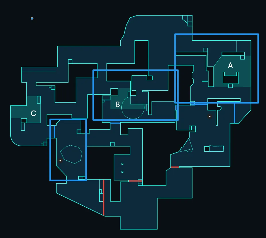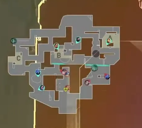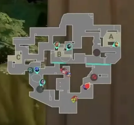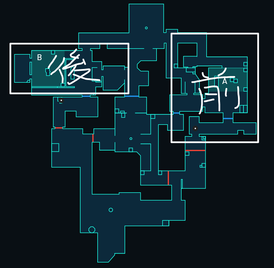 基本的にレギュラーな守りとして、両サイトを引いて守るとどっちに攻めてきているのかがわからないのでAメインをとりに来ていないということはCコントロールを防衛側がしに来ているのではという予想はできる。