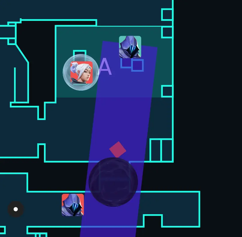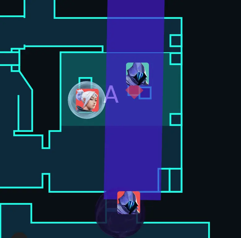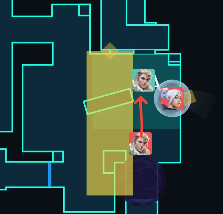 だからこそ攻め側はこの箱に対してスキルを使って1v1斜線を防衛側に作られないように、カバーラインを維持するために、防衛側が箱に隠れられないようにして前にしか出れないようにするのが攻め側のスキルの考えになるというわけです。スキル要素によってベイトエントリーとして良い形が作れるというわけです。