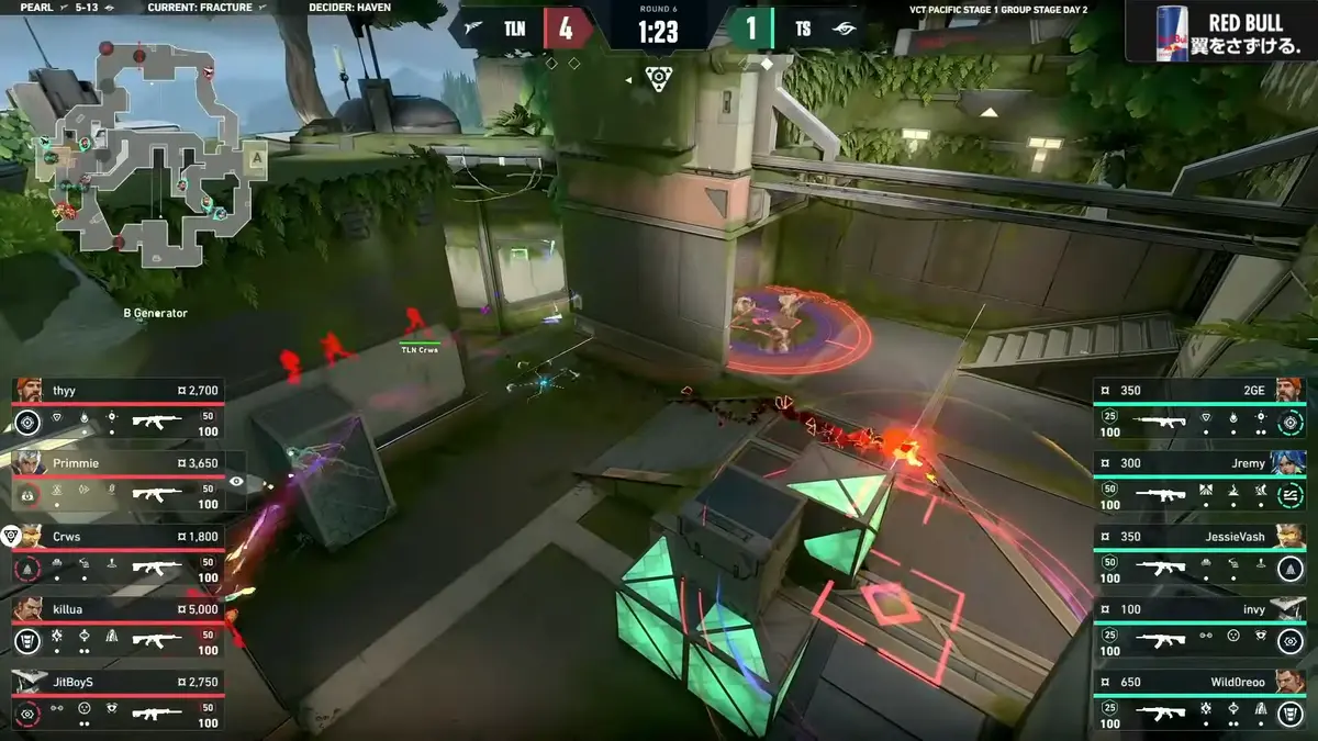 スキルタイミングはエントリーに合わせないでワンテンポ遅らせて、Jettがベイトしたタイミング、敵のエイムがJettに向いたタイミングでリコンなどを使うとより効果的だということです。
