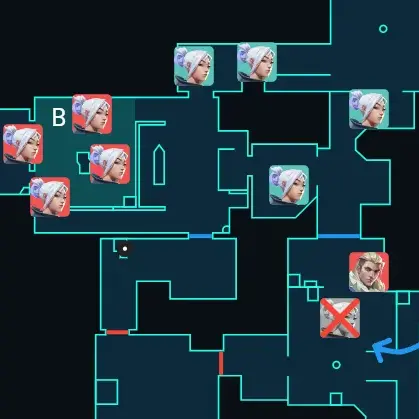 もちろんBサイト中のKilljoyとSovaがいたという情報で切り返していることと、Omenがno-infoなので警戒すべきですが、それでも人数の少ないほうに行こうと考えるのが丸いです。