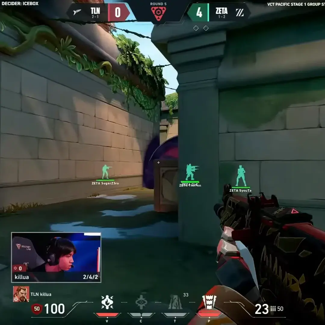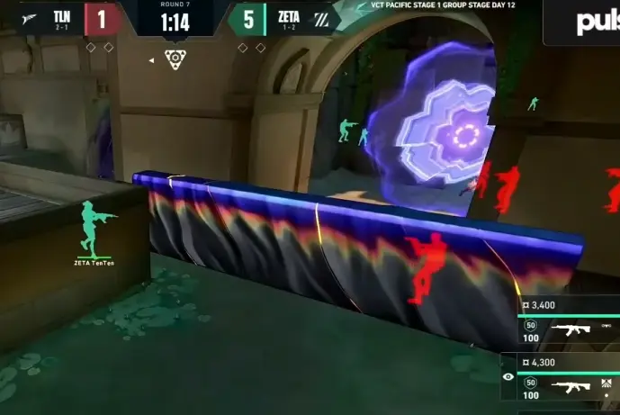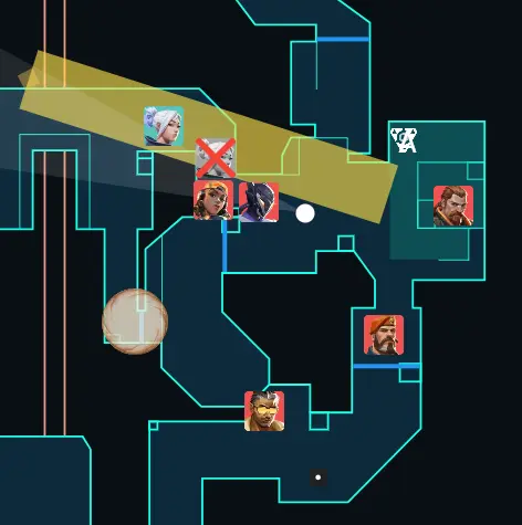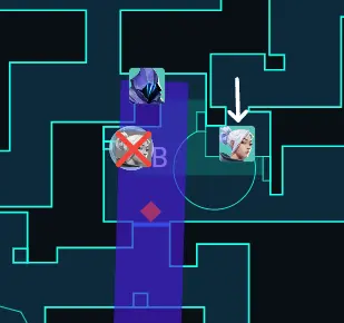 遅延のポジションについているJettがメインにカウンターのスキルを使ったOmenに合わせるのは無理だということです。