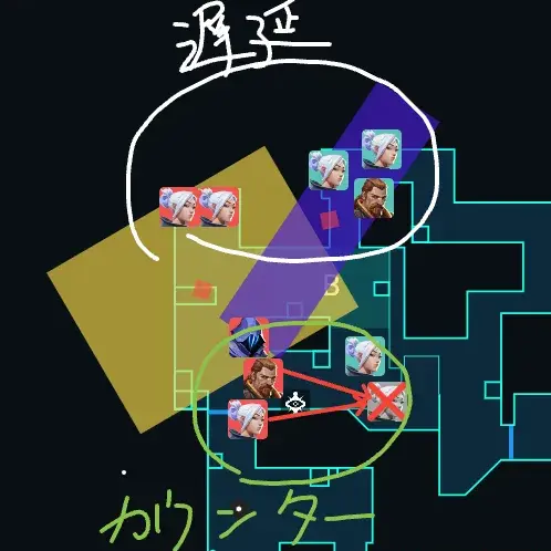 遅延の動きというのはカウンターではないということですから、無理に顔を出してキルをとりにこうとしない・ピークをしないで待つという動きです。