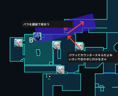 相手のBへの切り返しをみてからViperULTを使いエントリーに対しての遅延行動をとります。