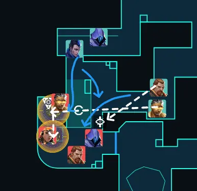 防衛側のやりたいことはサイト中で守るために相手のセットに対してOmenのパラノイアで一回遅延して分断や後続を止めようとする動きです。
