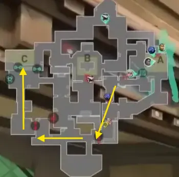 防衛側のラッシュでサイトに寄せた後の逆サイトプラントとわかってからのローテ・リテイクの仕方に注目して書いていきたいと思います。