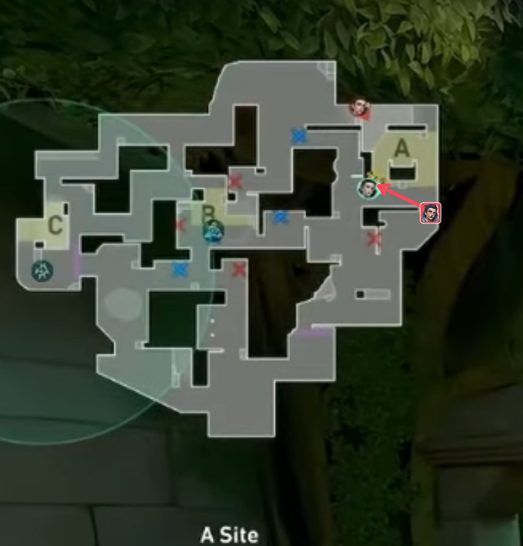防衛側のCypherとしては、最終サイトにYoruがいたことを味方から報告を受けているのでサイト中を警戒しつつも、