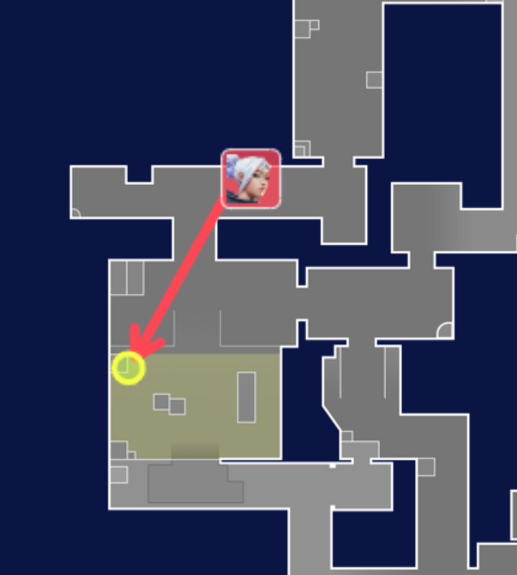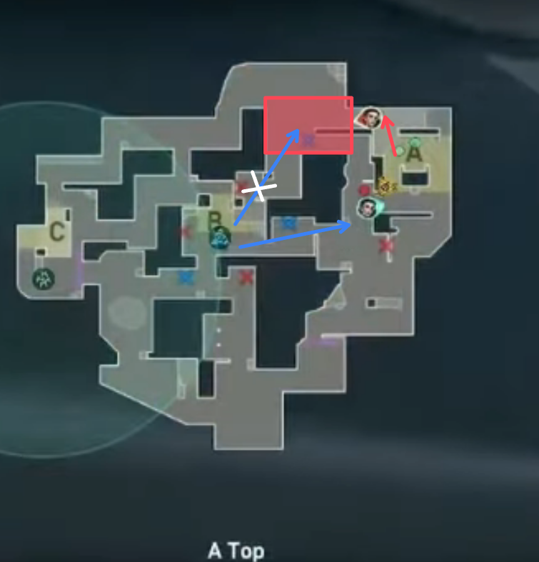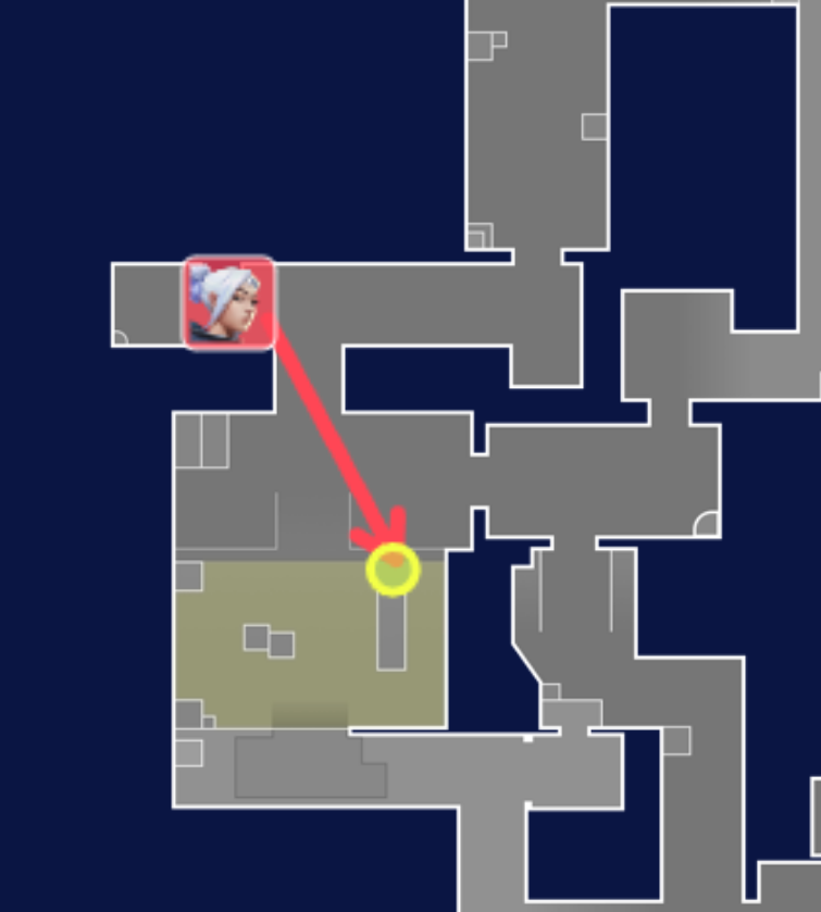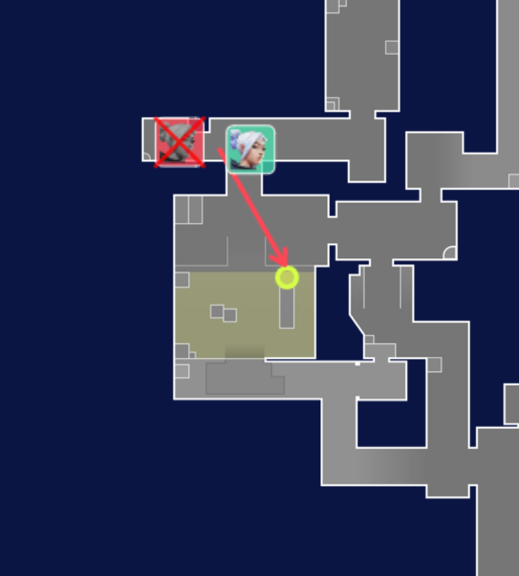 攻め側がYoruだった場合、相手に位置がばれたとしてもゲートクラッシュによるTPという可能性を考慮しないといけないのでよりどこからピークしてくるかがわからなくなるシチュエーションでの例になります。