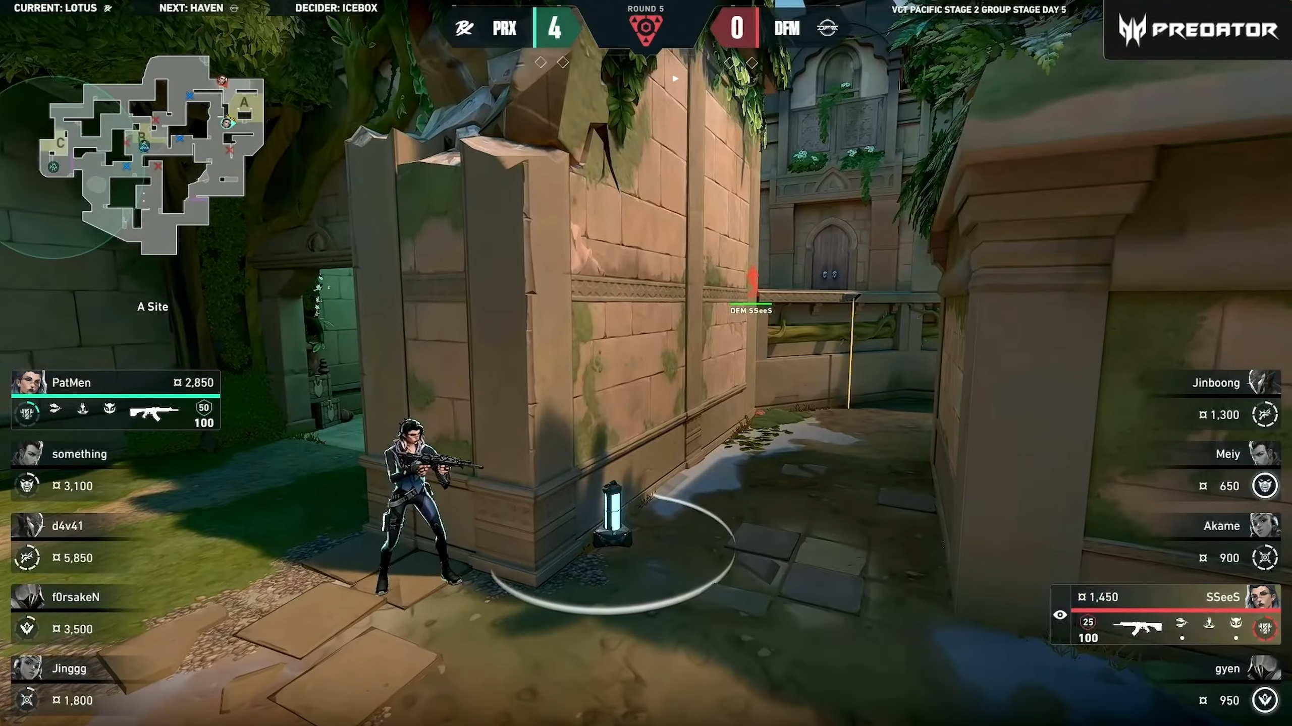 内容は昨日のVCT Pacific DAY 5 の PRX vs. DFMの試合からLotusの5ラウンド目の1v1シチュエーションでのプラント後の駆け引きについてピックアップしたいと思います。