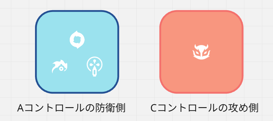 ①防衛側がA、攻め側がBとCメインのコントロール