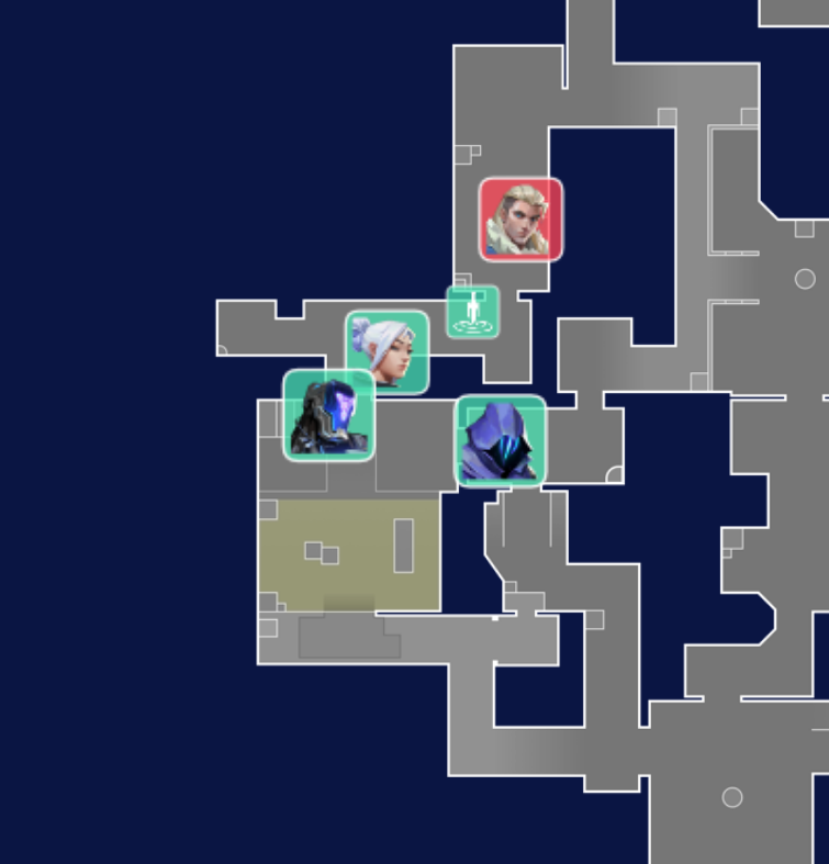 前目のエリアでドライを活かしたいオペのラウンドに限り、センチのサイトだけど前にJettを行かせて逆サイトに体をKilljoyが寄せた4配置も可能性としてはありだと思います。