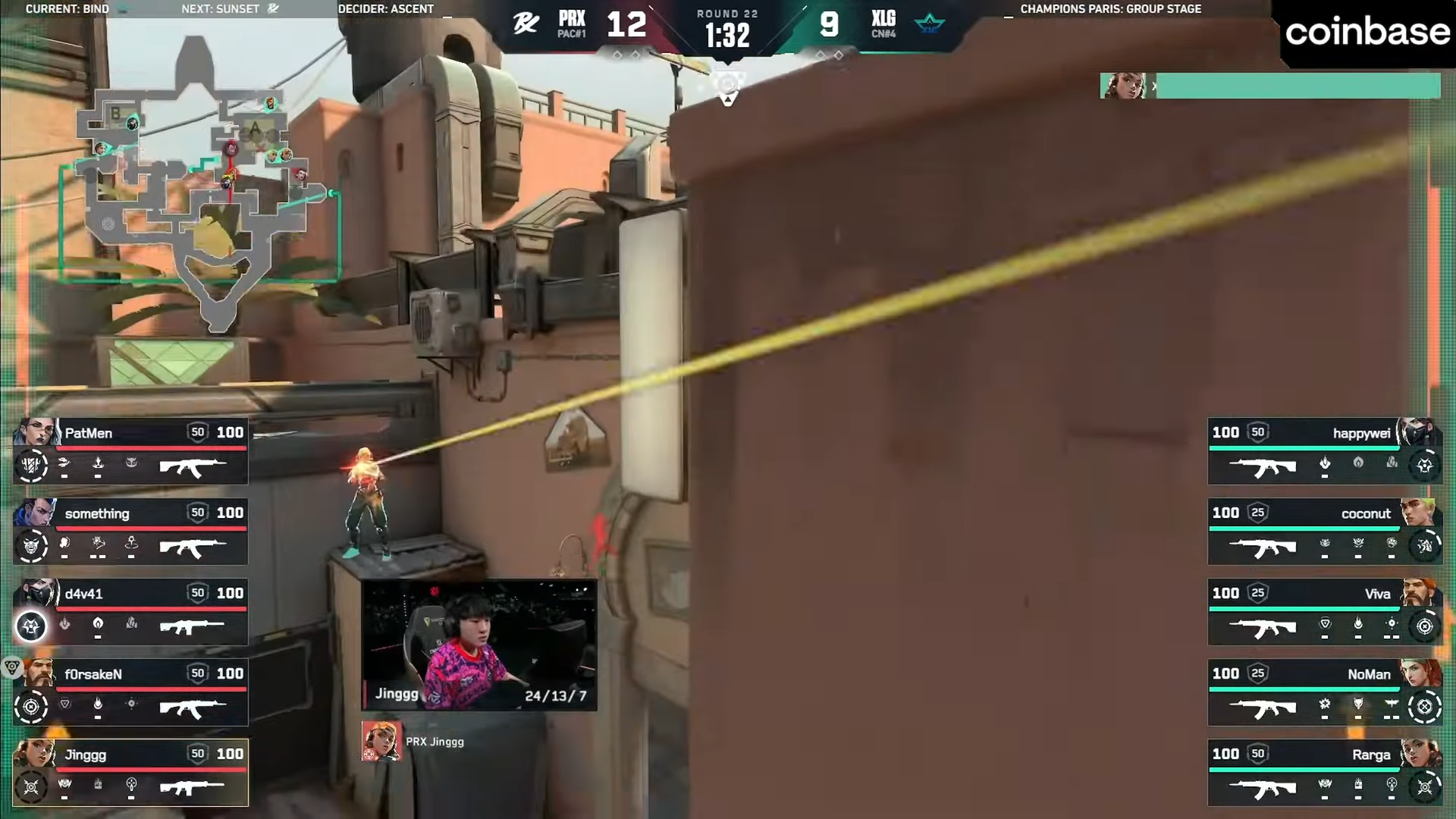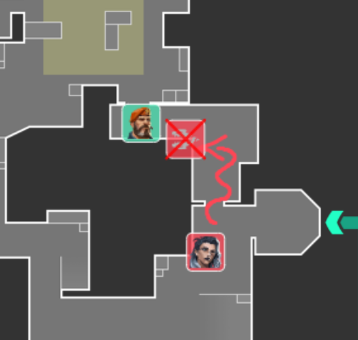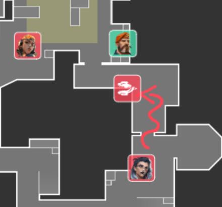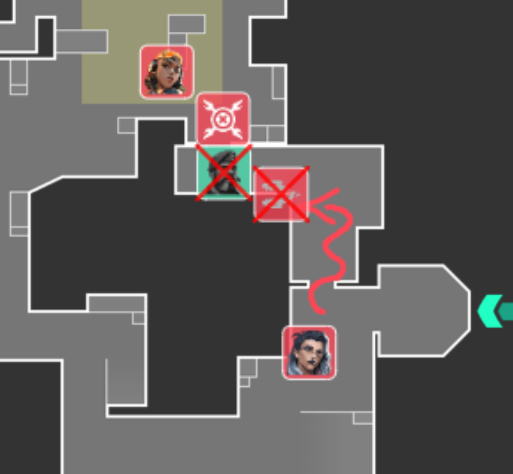 Razeが上の高台にポジションをとることでRazeULTで相手が突っ込んできても共倒れというリスクがほぼない形を作っています。
