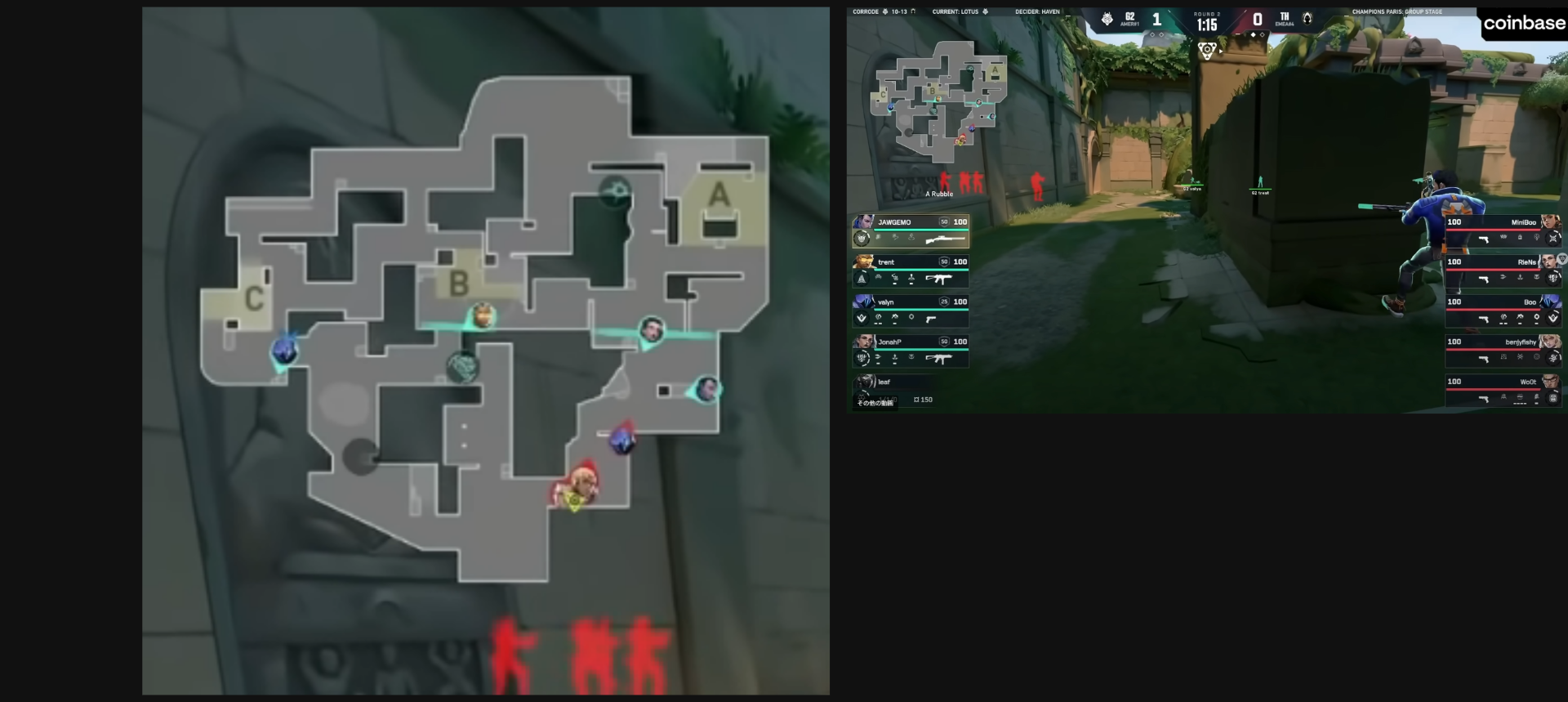 MIDに防衛側のJettがローテを確認できていたのですぐにフェイクとばれてしまいます。