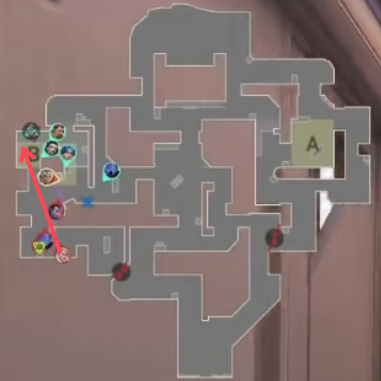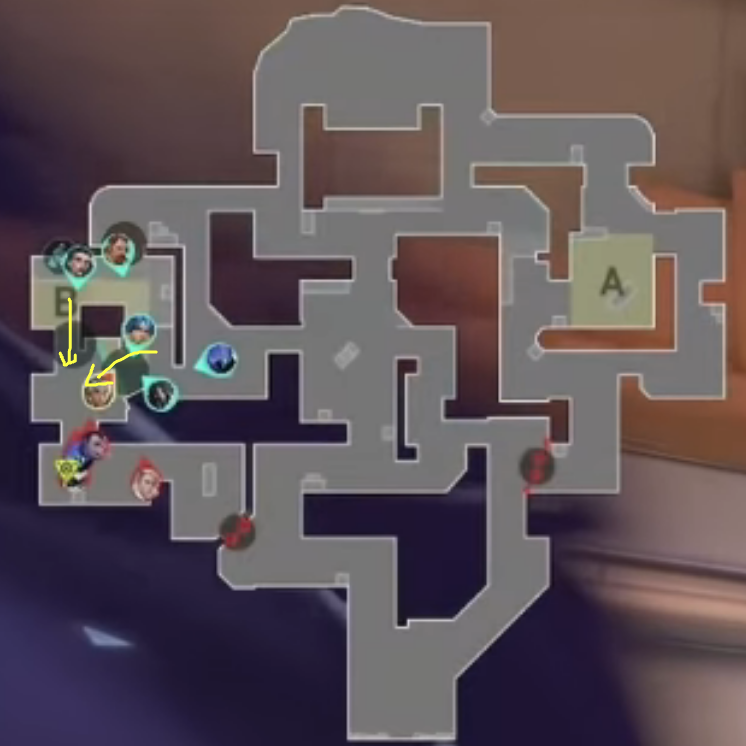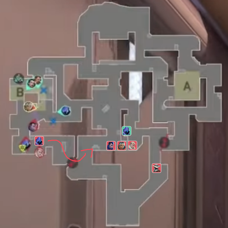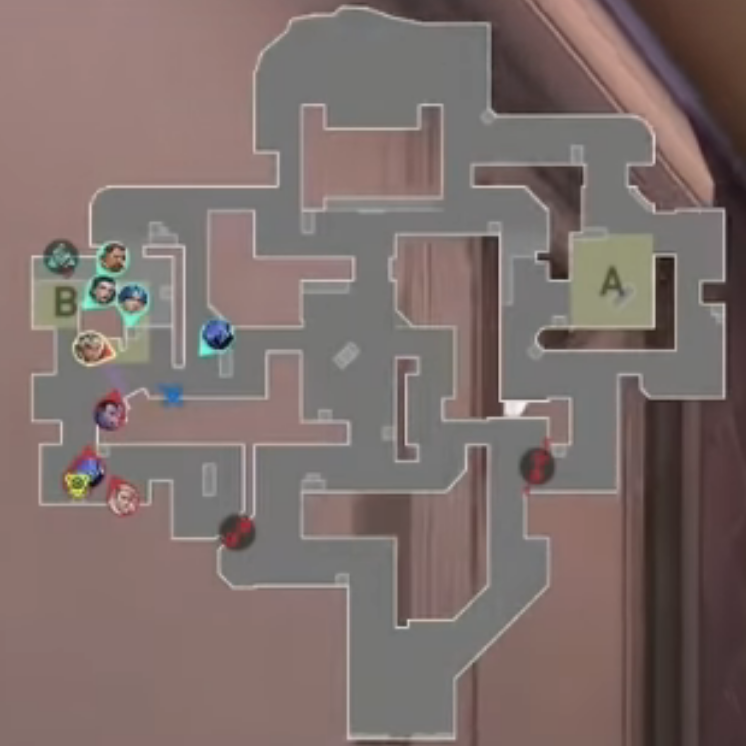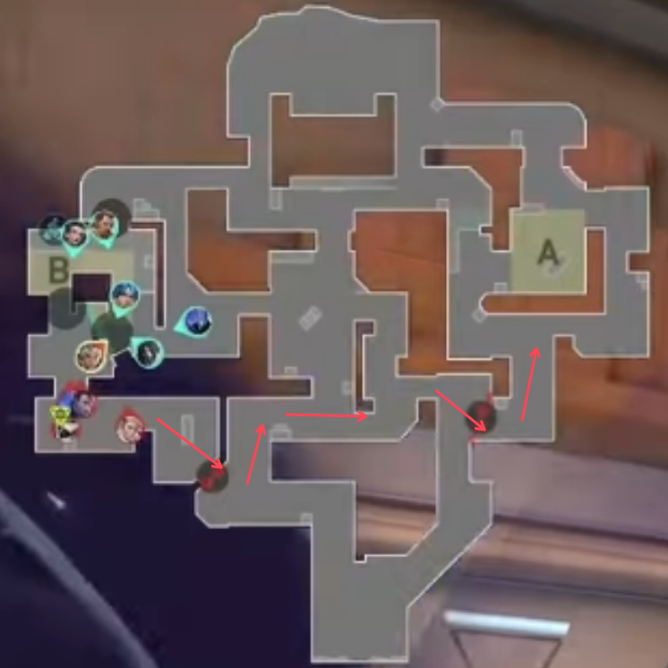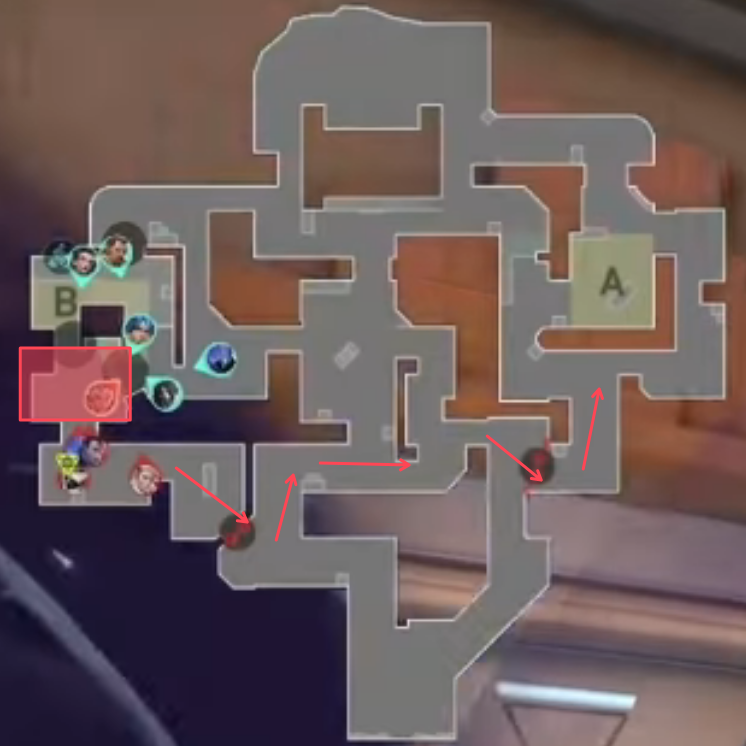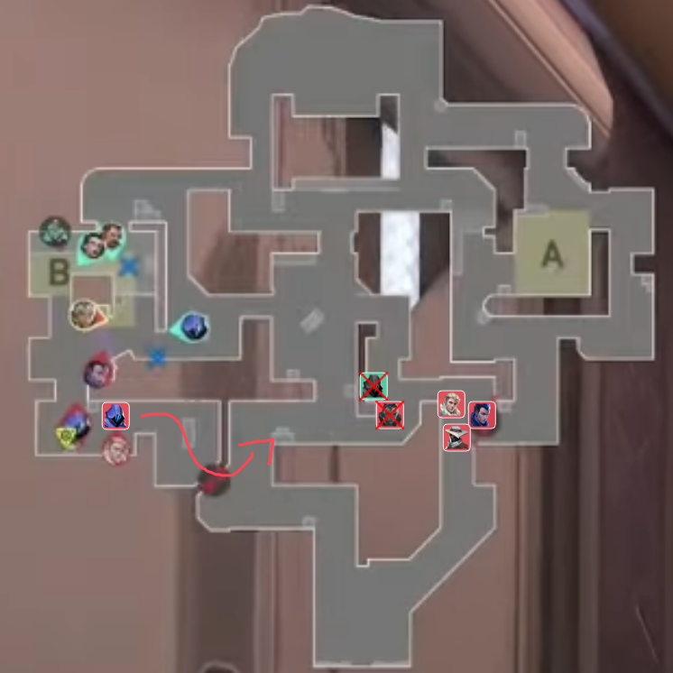 攻め側はスモークが晴れるまで防衛側は情報が取れないのでBに人が残るという展開は予想できます。であれば「Aに切り返す」というのは選択してとしてありだという話をしました。