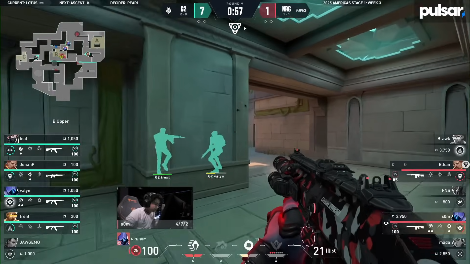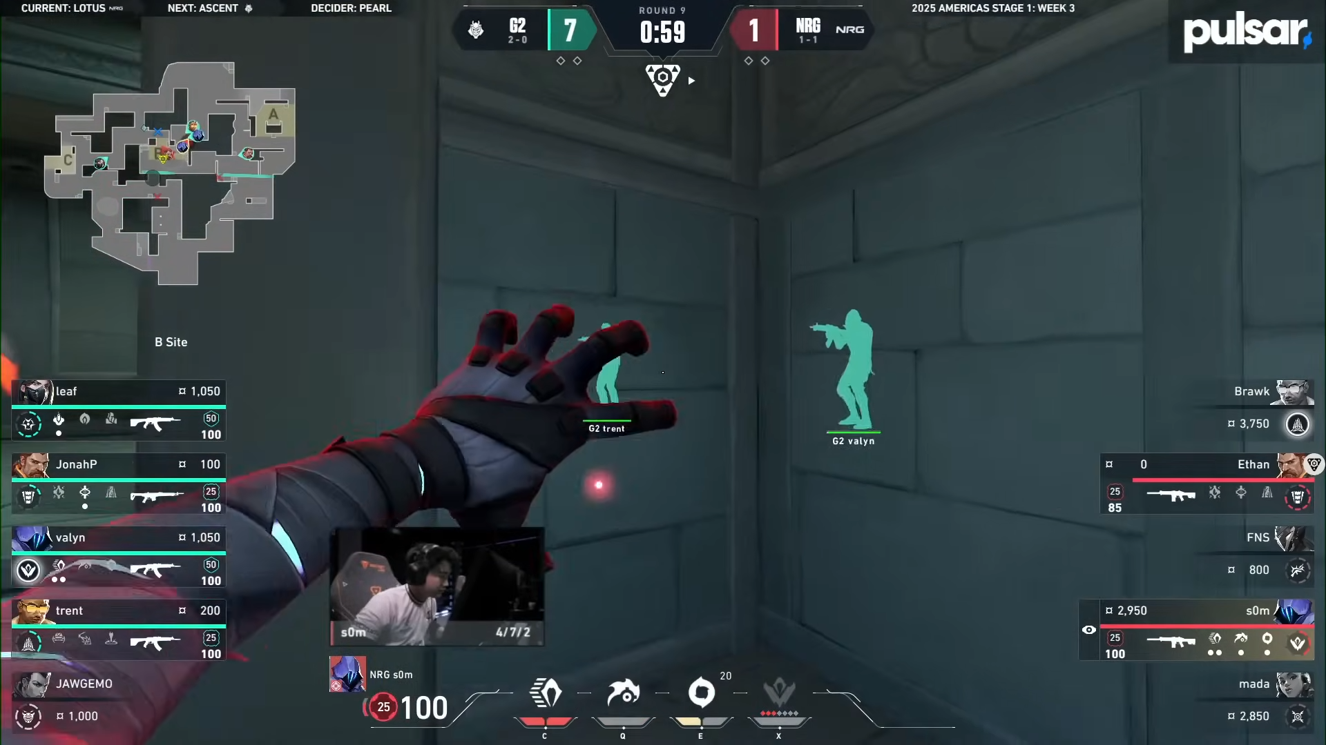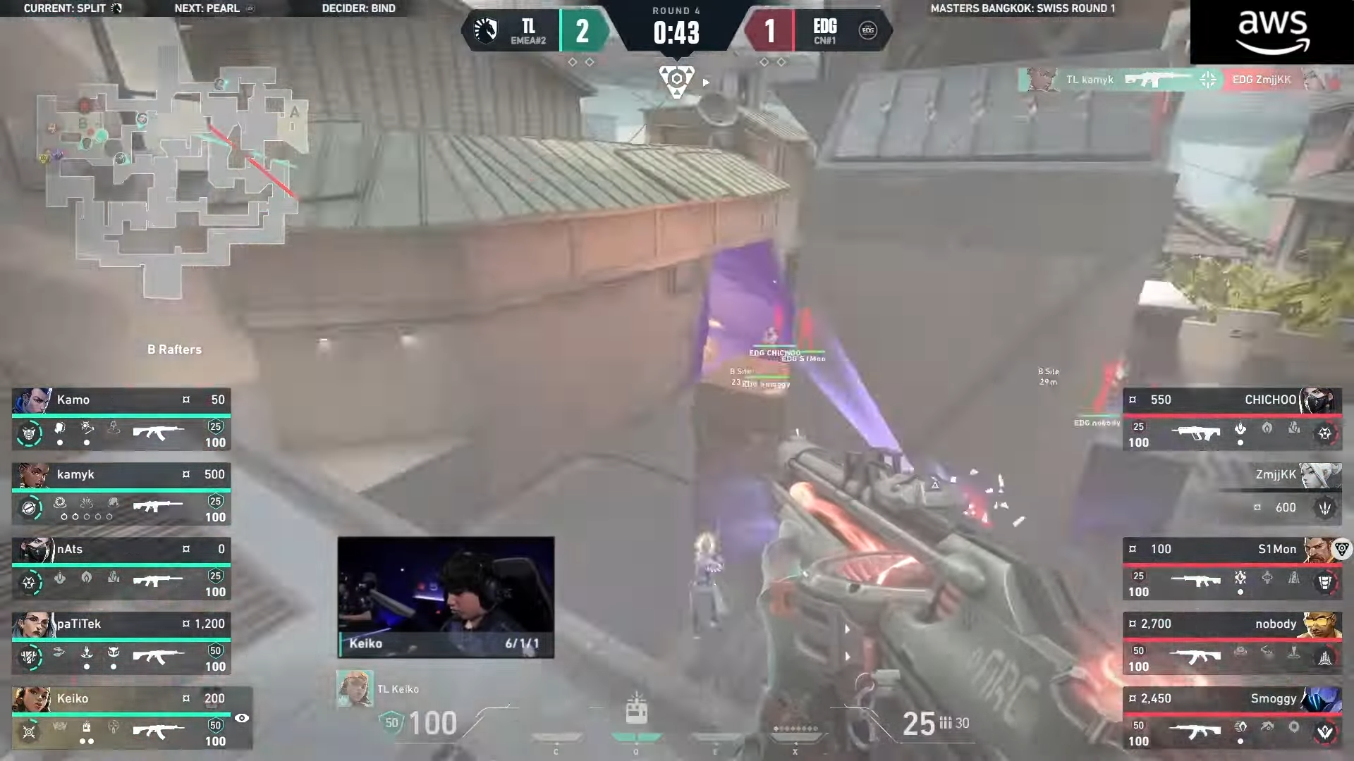 その間MIDを管理していた攻め側のCypherは防衛側がMIDをプッシュしてきているのを確認しました。人数をかけていることを予想してBラッシュはさらに加速します。