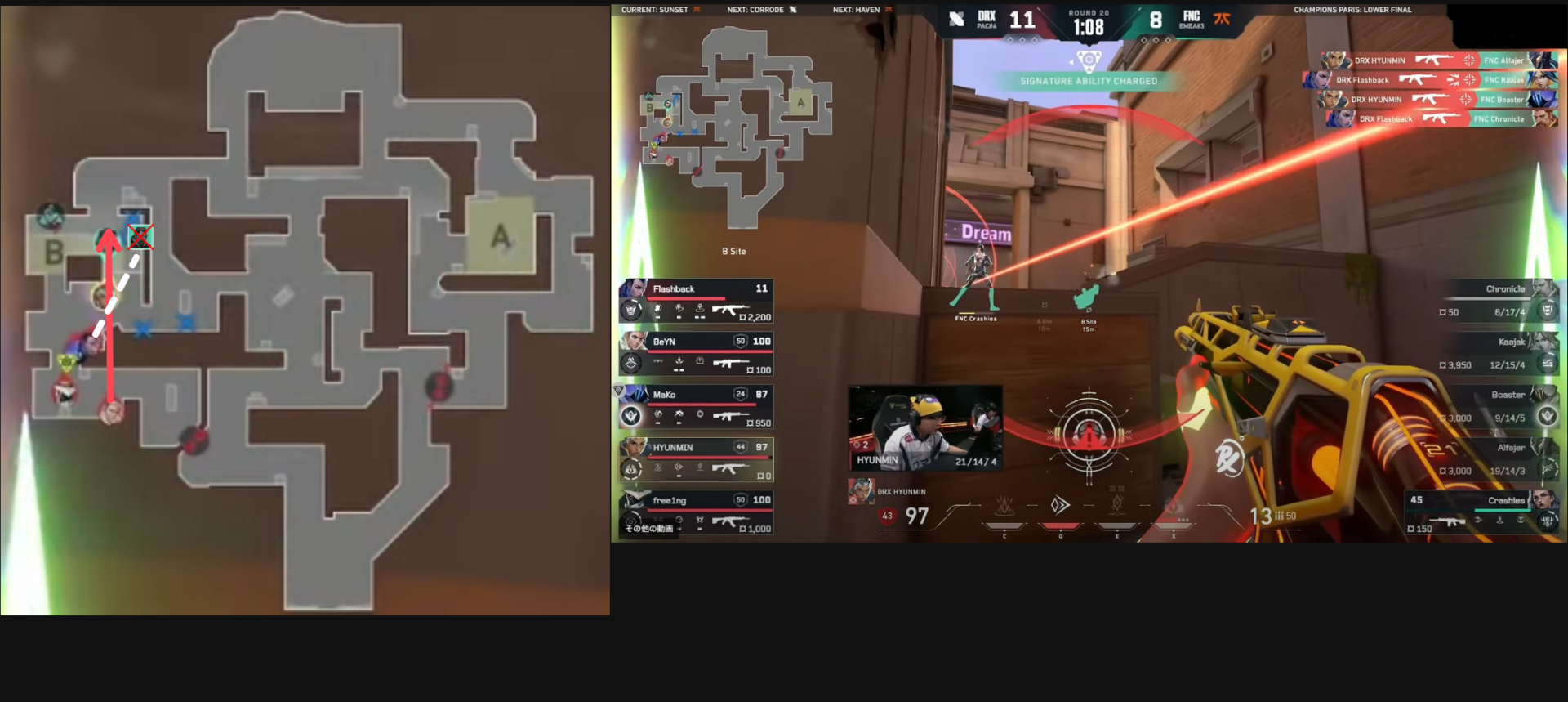 ASCENTの例もまさにDRXのカウンターの形を引用しましたが、DRXはこういった自分たちがカウンターを行う時のエリア意識や形の作り方がうまいチームだと思います。