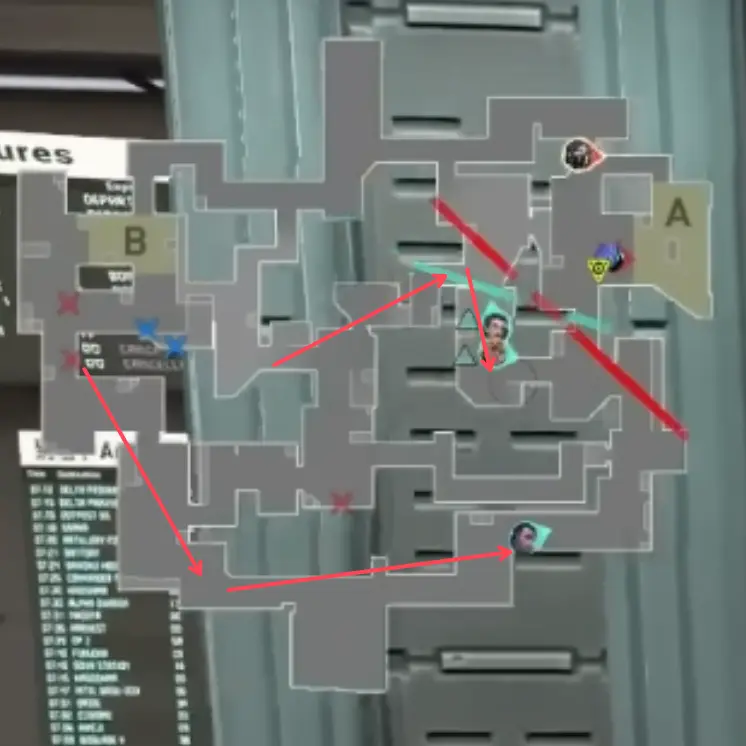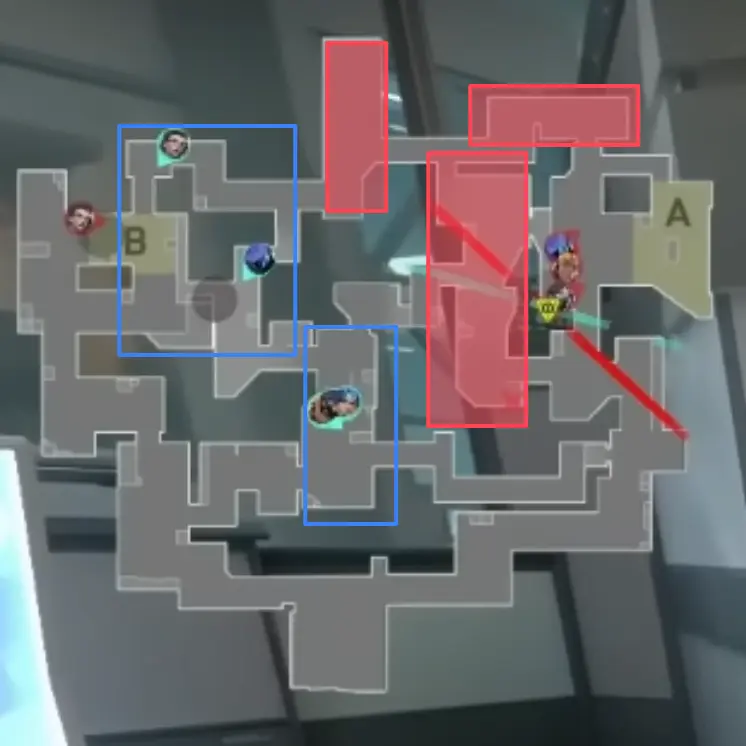 防衛側はCTやヘブンなど エリアを手放している ため、プラント後に CTからのリテイクが難しい 状況になります。メインのViperULTが見えているなら、挟まれる想定で攻め側がCTを取りに来ることも考えられます。