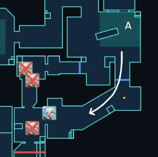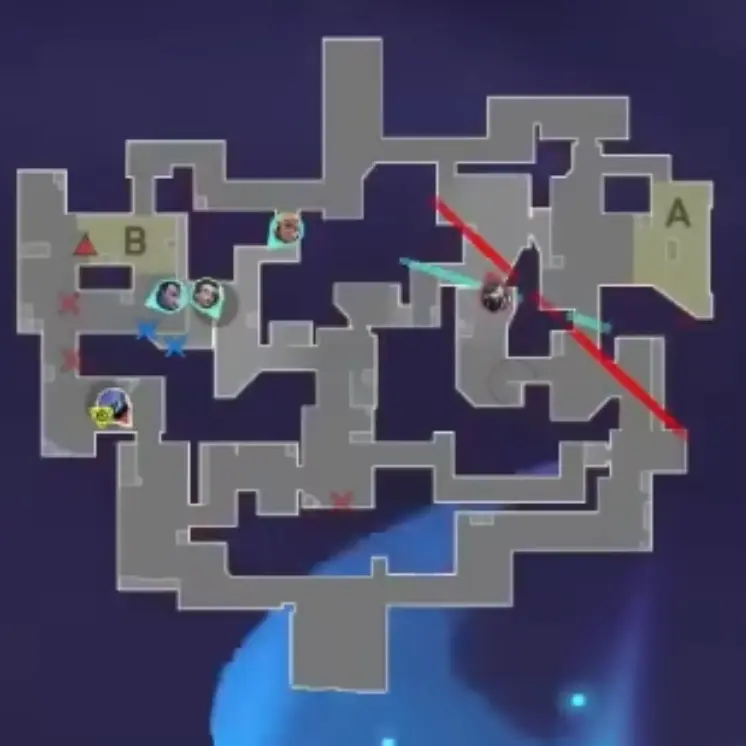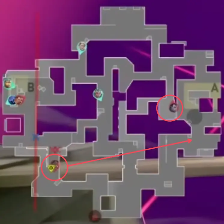 ラークしていた攻め側のYoruがAサイトを取ったことで、攻撃側のAstraはAへローテします。