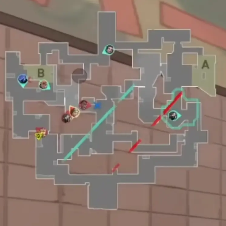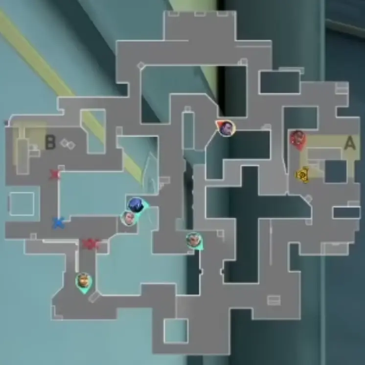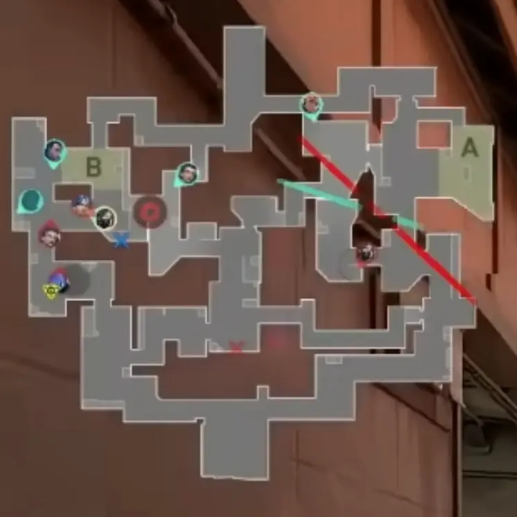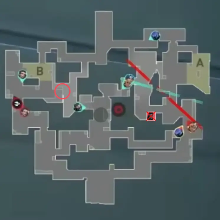 このラウンドは以前にも紹介しましたが、攻撃側のYoruがスロープで倒され、Bでアクションを起こすフェイクの形です。