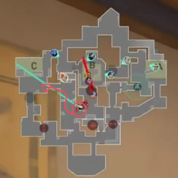 さらにプラント後、Cypherもガレージ方向に“もう1枚”のラーク行動を重ねていきます。