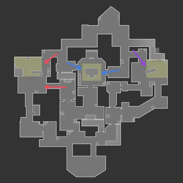 CサイトやBサイトは、防衛側が複数レーンからリテイクできます。