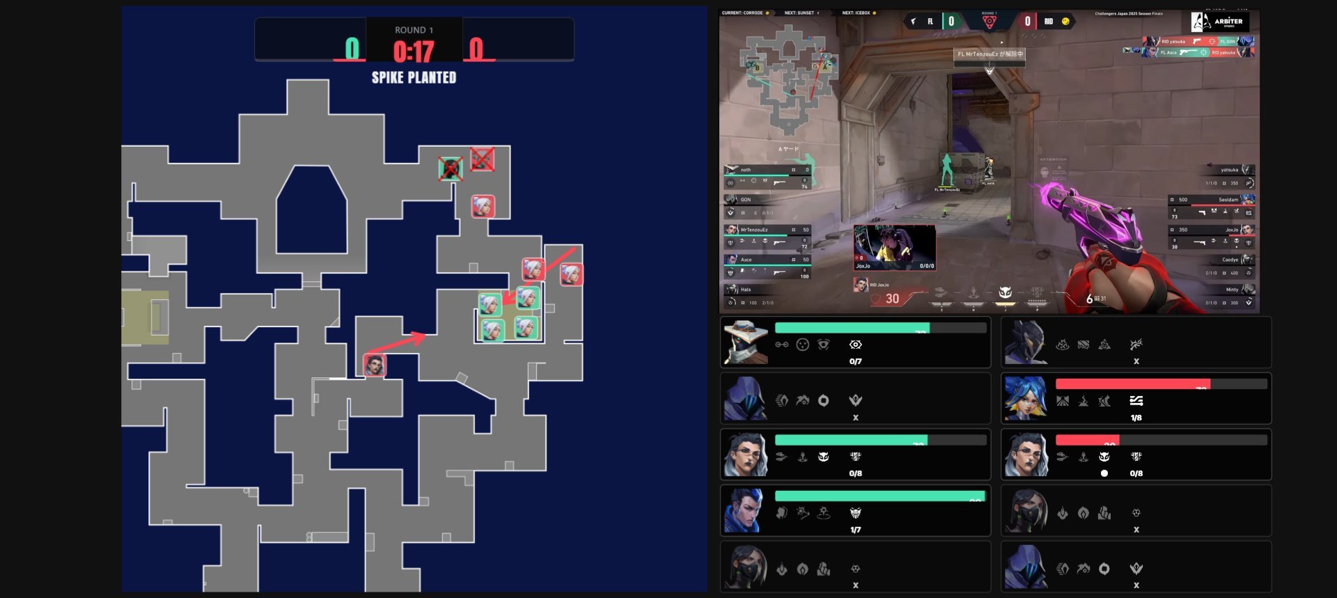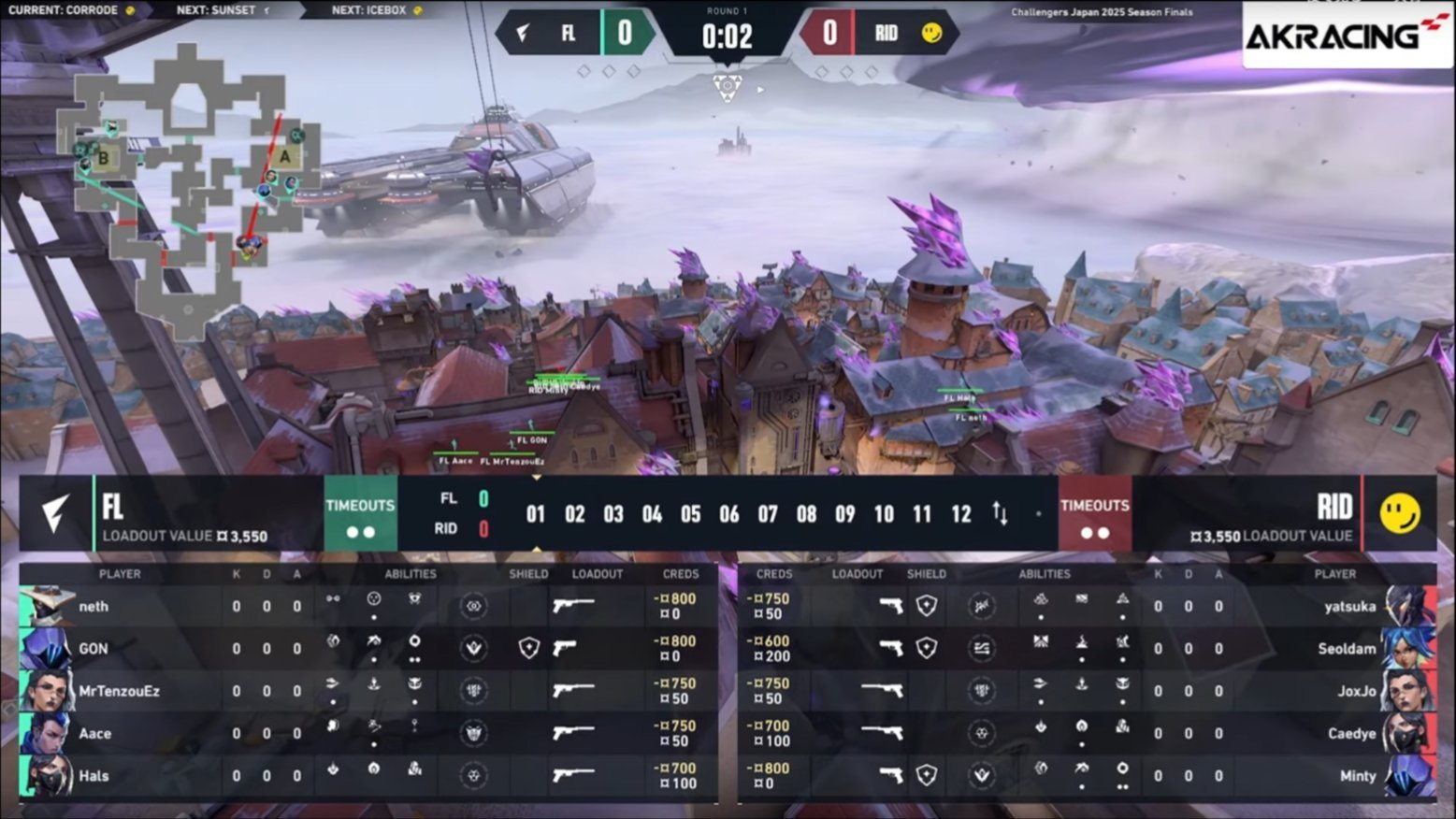 「VCJ|FL vs. RIDとVCT|RRQ vs. TLNのCORRODEでのはさみをみてみよう。」