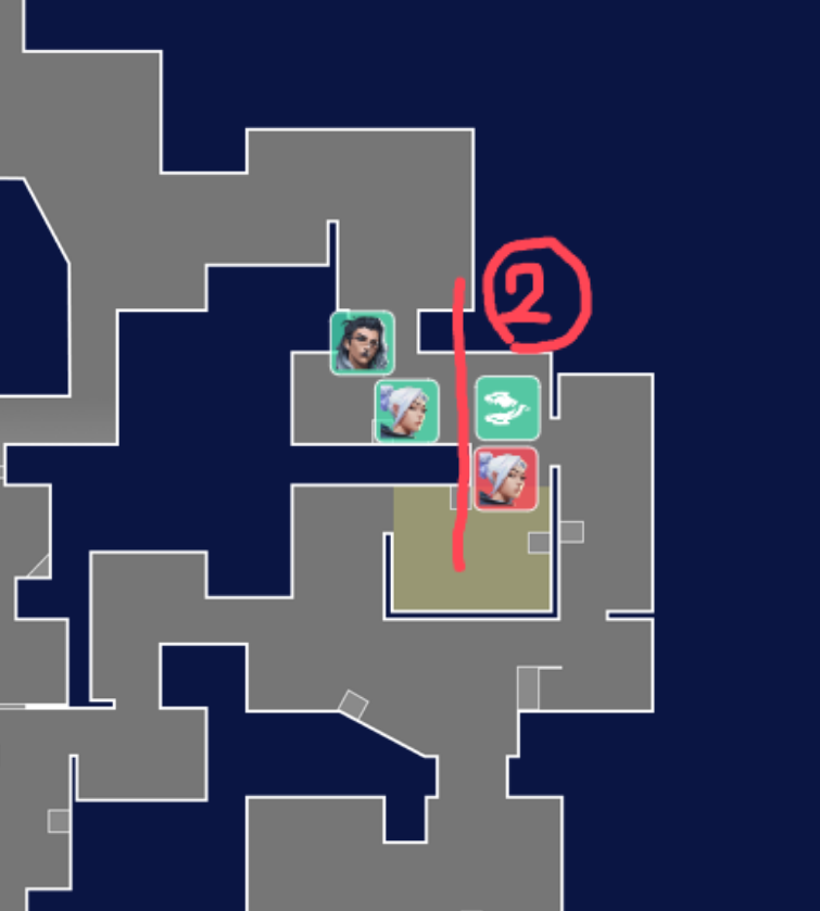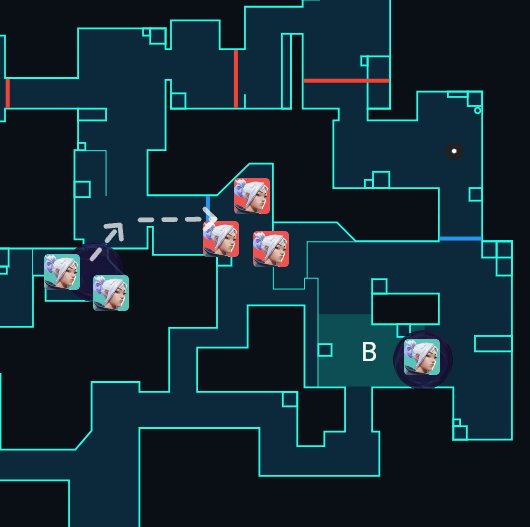 CypherやViperがいないサイトでの時間を使ったプレイはMIDや逆サイトからのつめは基本的にないと考えられる。逆サイトにいるCypherやViperがトラップより前に出て情報をとる可能性は低いという予想です。0ではないですが。可能性の高低差の話です。